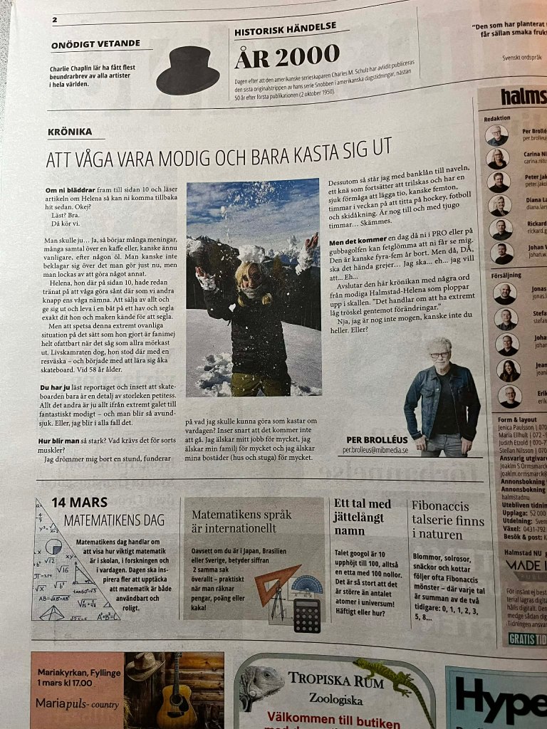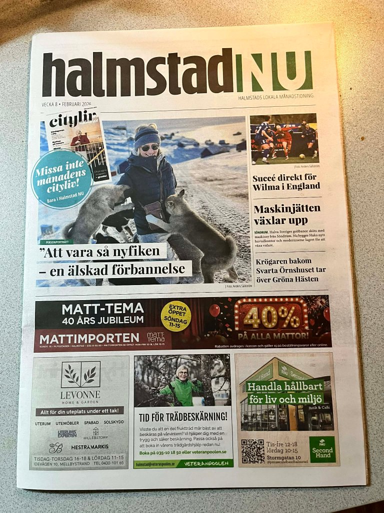 Men när tidningen efter någon vecka äntligen ligger på matborden runtom i Halmstad andas jag ut. Reportaget är varmt och ärligt skrivet, precis som jag hoppades. För hur konstigt det än låter kan jag ibland känna mig obekväm när jag hamnar i centrum – det beror på sammanhanget, på vem som tittar och varför. Den här gången kändes det annorlunda. Den här gången kändes det faktiskt väldigt bra.