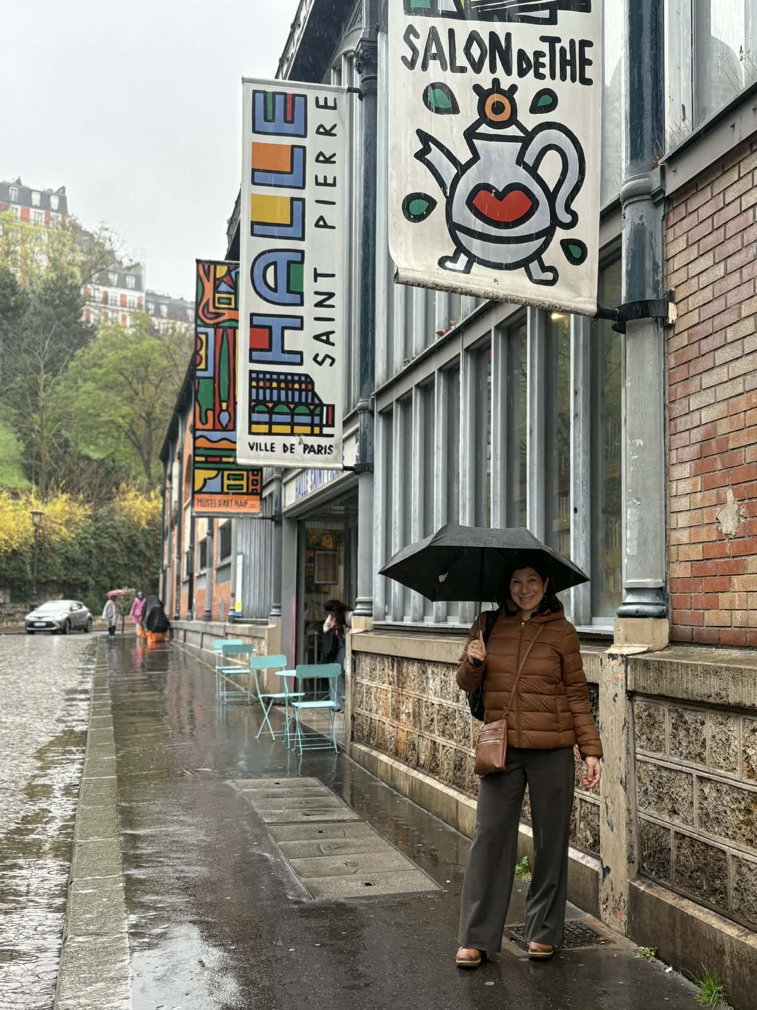Nu är gatorna bajsfria; renare och lättare att promenera på. Trots ett stilla men ihållande regn bestämde vi oss för att göra staden till fots. Vi ville inte missa några sevärdheter, men också hinna med ett besök på L’Étoffe des Rêves, en textilutställning i La Halle Saint-Pierre.
