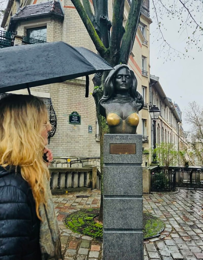 Så föga förvånad blev jag när vi klev in på utställningen och fann att verken var rätt oborstade. Art brut kan vara rått och gränsöverskridande. Så att gå runt och titta på förvridna kroppar och gigantiska könsorgan tillverkade av tyg kändes lite för mycket för min smak. Desto trevligare var det att efteråt passera statyn av den franska sångerskan Dalida och låta min hand smeka över hennes byst. Det sägs nämligen att man får tur i kärlek om man vidrör hennes bröst. Så nu väntar jag bara på att det ska ske, ha ha…